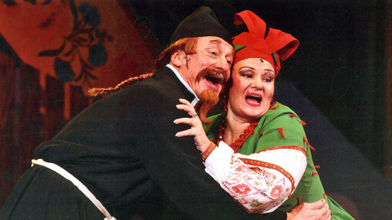 Конечно, оперетта – о любви, возникшей стремительно, развивающейся бурно и победоносно завершающейся. Герои этой любви – Парася и Грицко – симпатичные и обаятельные, но в них, на мой взгляд, мало сегодня того любовного накала, той всеобжигающей страсти, что и составляет их героический дуэт. Оперетта, как всегда, выигрывает за счёт второстепенных и условно отрицательных персонажей. В центре актёрских удач – колоритная Хивря в талантливом воплощении Елены Бондаренко. Мы не раз отмечали её удивительное ощущение жанра, её оглушительный темперамент, умение превращать каждую встречу со зрителем в любом образе в фейерверк поз и интонаций. Вот и в нынешней «Сорочинской ярмарке» актриса убедительно демонстрирует весь арсенал своего редкого в театре оперетты таланта.