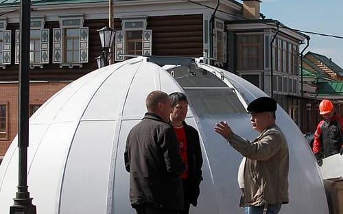 Купол диаметром 4,2 метра был установлен в минувший вторник на обсерватории иркутского планетария. Сооружение весом полторы тонны поднимали при помощи крана, с момента отрыва от земли до установки прошло 25 минут. Если всё будет хорошо, то 6 июня в обсерватории будут наблюдать проход Венеры по диску Солнца. «Сбылась мечта?» – спросили мы у директора астрономической обсерватории ИГУ Сергея Язева. «Сбывается», – поправил он, вскидывая фотоаппарат. Язев с самолёта – читал лекции в Петрозаводске, успел чуть поспать и – на площадку в 130-м квартале.