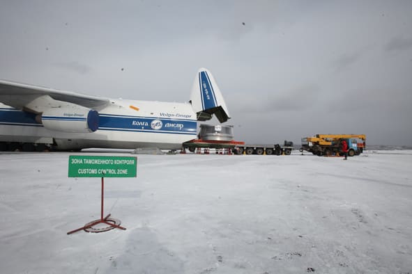 Воздушно-транспортная операция по доставке тяжеловесного груза традиционно проводится авиакомпанией «Волга-Днепр», специализирующейся на перевозке сверхтяжёлых и крупногабаритных грузов -