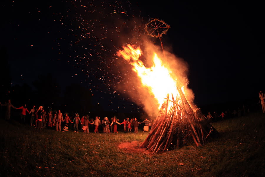 – Здесь всё имеет значение. Девушки за день до Купальле плели венки, ходили по деревне, забрасывали их на крыши неженатым парням, – комментирует происходящее Алёна. – И костёр парни не просто собирали из брёвен, а заранее приносили на поляну какие-то старые вещи, их сжигали как символ очищения и готовности к новой жизни.