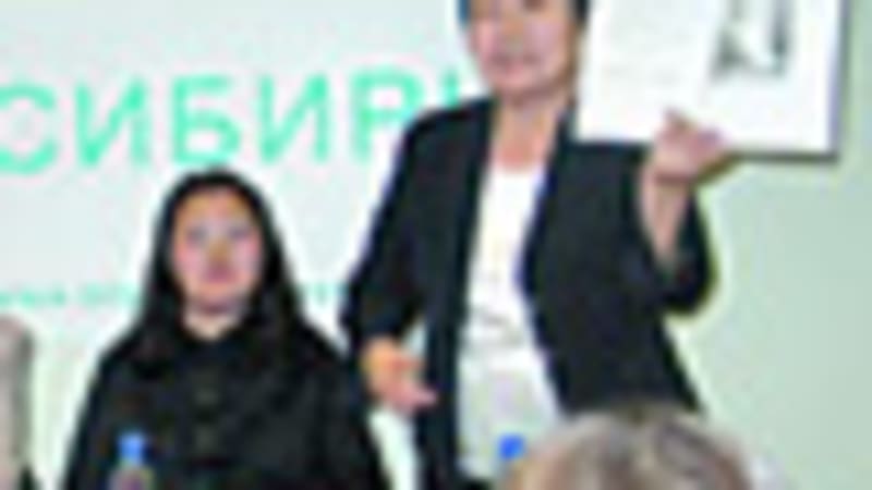НА СНИМКЕ: момент пресс-конференции. Выступает Галина Рыбина-Дрюон. Второй слева — её супруг