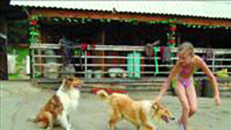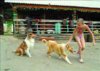 Пока мы беседуем с Еленой, Лиза успевает сделать несколько кругов на велосипеде, погладить волка, запереть рысь в доме и, наконец, хватает водо-проводный шланг. Собаки поднимают дикий гвалт. На улице плюс 34, и им трудно пережить такую жару в мехах. Лиза поливает пёсьи бока водой, а те ртами хватают воду прямо в воздухе. У Лизы — три собственных собаки, они живут в отдельном вольере.