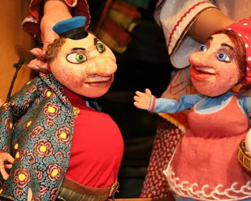 Все Петрушки были на одно лицо, в одинаковых нарядах: в красном кафтане и колпаке с бубенцом, с кое-как намалёванной улыбкой…