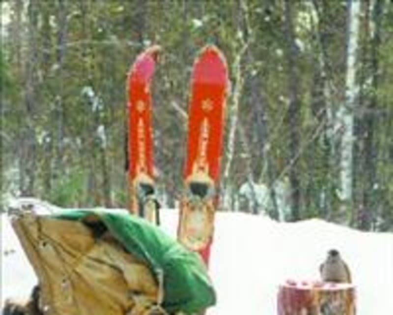Здесь, у моего зимовья, стоящего у небольшой речки, мороз наклонил к поверхности снега кончики ветвей берёзок, а самые низкие положил…