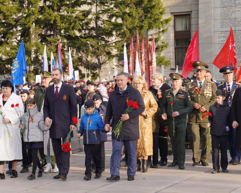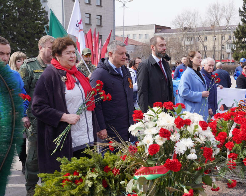 Венки и цветы возложили к мемориалу «Вечный огонь Славы» в Иркутске в рамках акции «Пламя гордости за Победу», которую проводит…