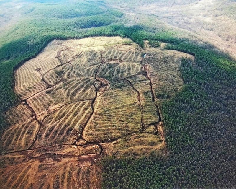 Квадрокоптер, пытаясь уместить в один кадр обширную таёжную вырубку в государственном природном заказнике «Туколонь», забрался уже почти на километровую высоту.…