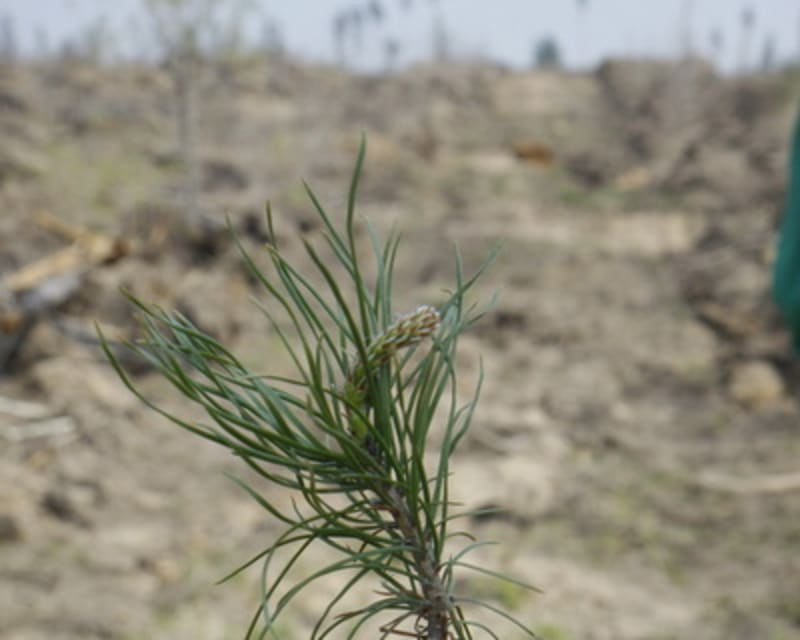 Мечом Колесова – специальным инструментом для посадки сосны – специалист делает глубокую узкую щель и предлагает Еве опустить в неё…