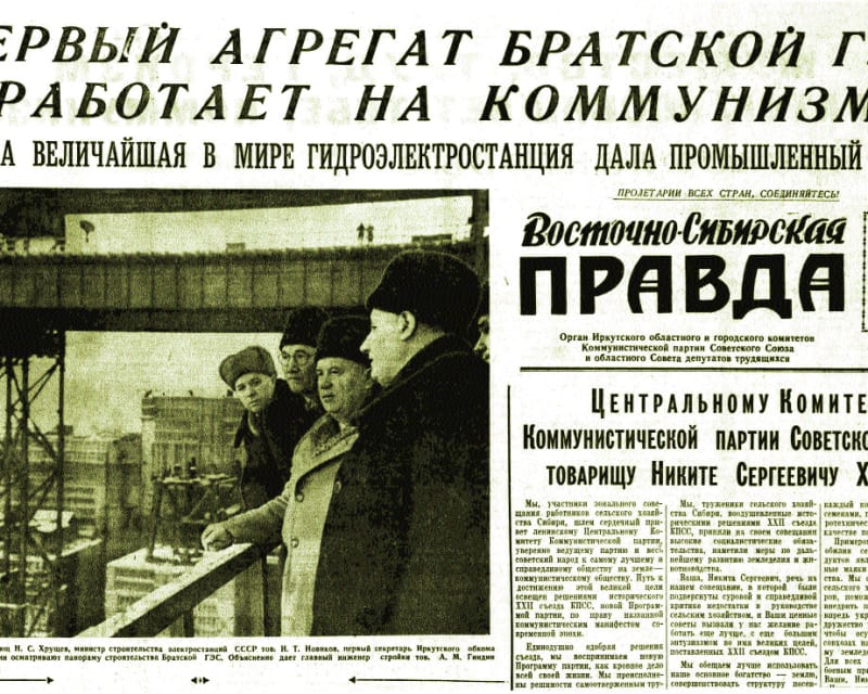 Коллектив в 100 тысяч человек«Как сказочный великан, положив свои огромные бетонные руки на береговые скалы Пурсей и Журавлиная грудь, поднялась…