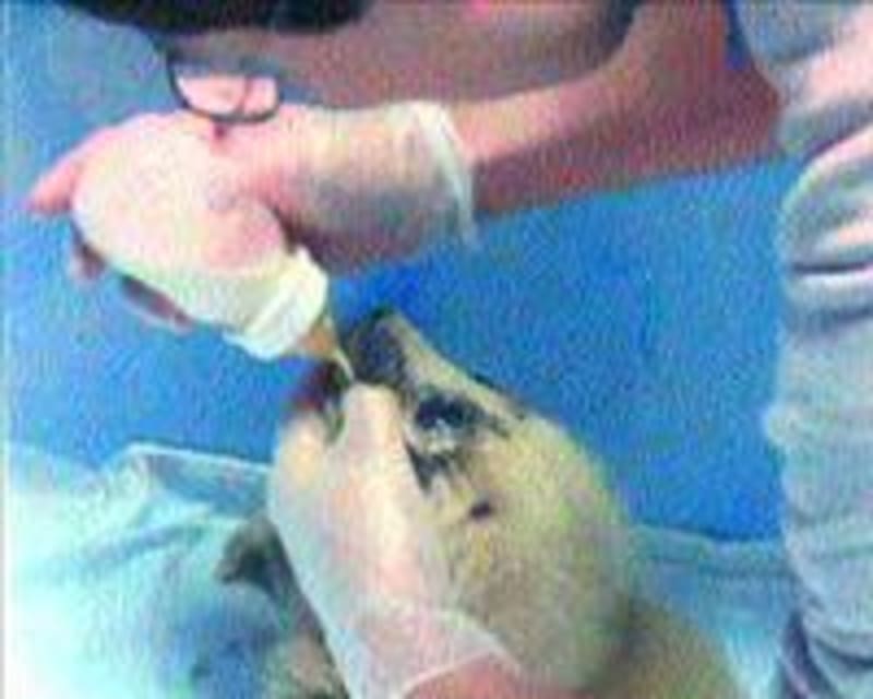 Работник океанариума, пришедший делать уборку, обнаружил в воде новорождённого детёныша. Его вес - почти 4 кг, а длина - более…