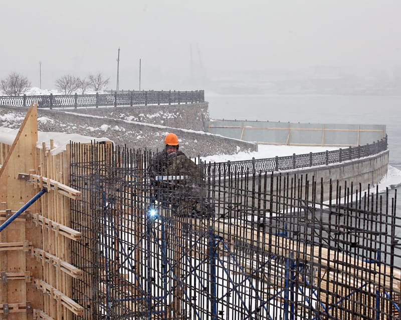 Большая стройка идёт на Нижней набережной реки Ангары. Сейчас там вбивают сваи и укрепляют берег железобетонной арматурой. В небольшой прорабской…