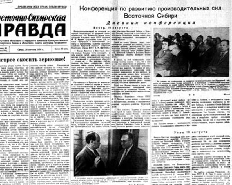 18 августа 55 лет назад (1958) в Иркутске открылась конференция по изучению производительных сил Восточной Сибири, созванная АН СССР, Госпланом…