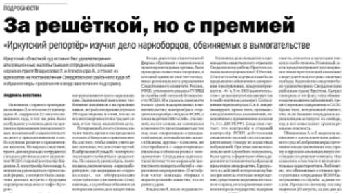 Любое воспроизведение или перепечатка публикаций газеты «Восточно-Сибирская правда», "Ступеньки", еженедельников "Конкурент", "Иркутский репортер", "Сибирский энергетик" без специального разрешения редакций запрещены (п.3 ст.1274 IV части ГК РФ).