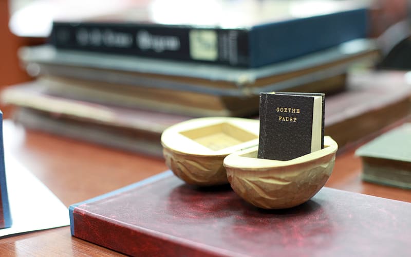 Орех с томиком Гёте из коробки с надписью «Особенные экземпляры книг» вынимают довольно редко. В апреле сотрудники отдела историко-культурного наследия…