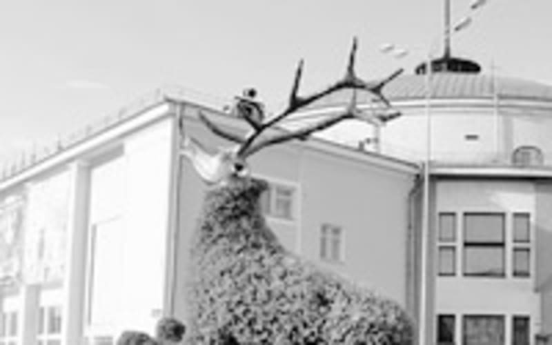Первого сентября в сквере возле здания цирка установлена зелёная скульптура оленя высотой более трёх метров. Как сообщила главный дендролог города…