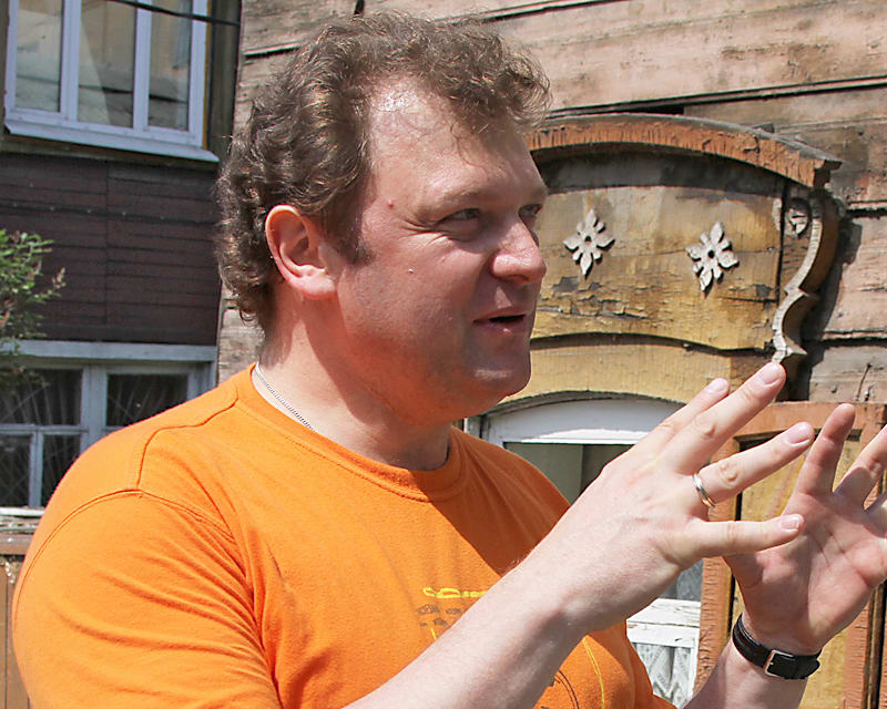Августовским утром мы встречаемся напротив входа в Дом быта на улице Урицкого. День только разгоняется, ещё не очень шумно и…